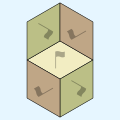 Using the edge relationships, add a tile adjacent to each edge. Flags and colors show how each tile is oriented.